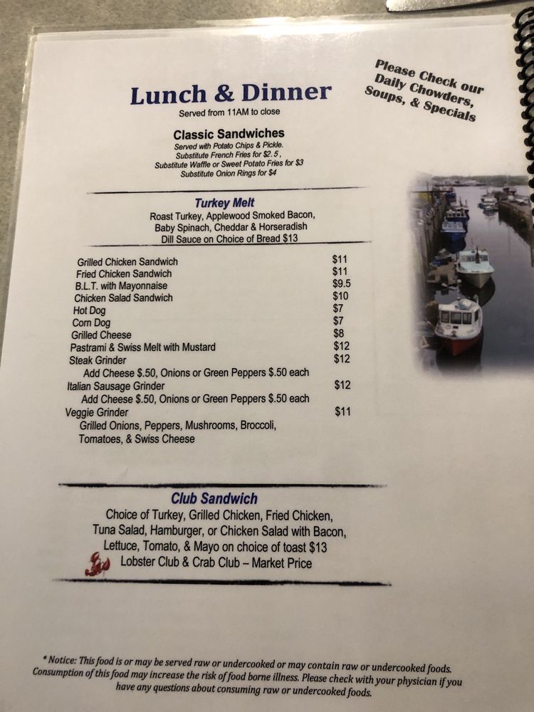 1/3 lb of Fresh Maine Lobster Meat with Swiss Cheese on Choice of Bread. Served with Chips & Pickle.