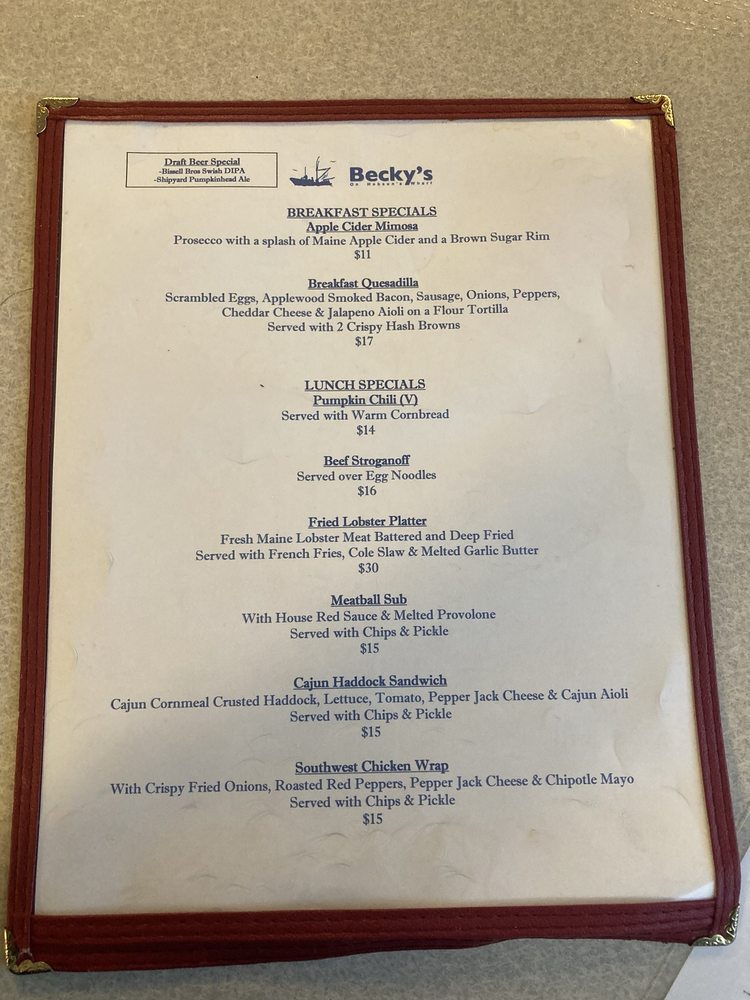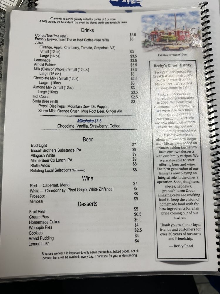 Introducing Becky's Diner, a charming American breakfast and brunch spot located at 390 Commercial St in Portland, ME. This casual eatery offers a variety of options, from seafood platters like Fried Haddock and Whole Belly Maine Clams to delicious seafood sandwiches such as the Fried Haddock Reuben and Tuna Melt. Their menu also features classic sandwiches like the B.L.T and Club Sandwich, catering to different tastes. Becky's Diner provides a welcoming atmosphere for groups and families, with amenities like outdoor seating, Wi-Fi, and gender-neutral restrooms. With a range of vegetarian options, happy hour specials, and the convenience of delivery and takeout, Becky's Diner is a top choice for a satisfying and enjoyable dining experience.