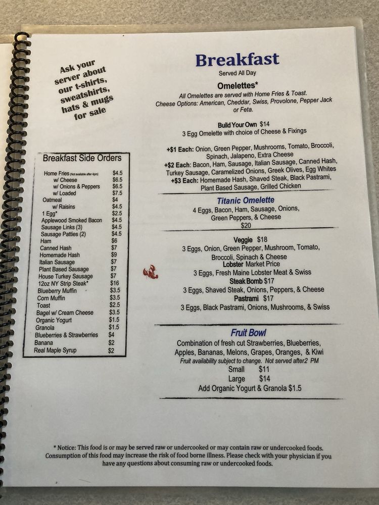 3 Egg Omelette with Fresh Maine Lobster Meat & Swiss Cheese. Served with Home Fries & Toast